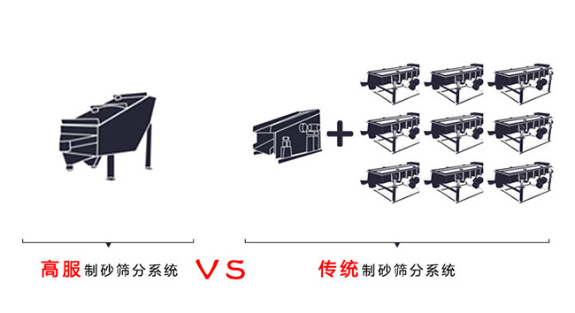 高服制砂篩分系統(tǒng)一臺GLS概率篩可分級多種規(guī)格,產(chǎn)量每小時(shí)可以達(dá)到50-250噸以上,投入成本低、占地少,概率篩可以安裝清網(wǎng)裝置,避免堵孔現(xiàn)象,傳統(tǒng)制砂篩分系統(tǒng)篩分孔徑小至5mm且多至3層,5mm以下需要加篩分設(shè)備,且產(chǎn)量低,增加成本和占地面積。 |